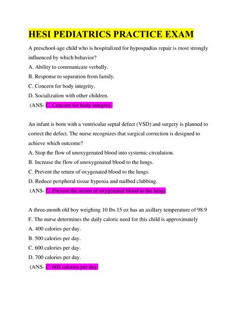 Online PDF Hesi Test Questions On Pediatric 149797 PDF Paperback Internet Archive